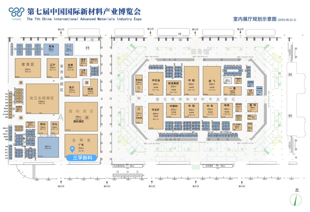 产业生态,全景呈现:设主题展、专业展、应用展三大展区,涵盖“十四五”成果、AI赋能新材料、生物基与无机非金属材料,以及海陆空天典型应用。
