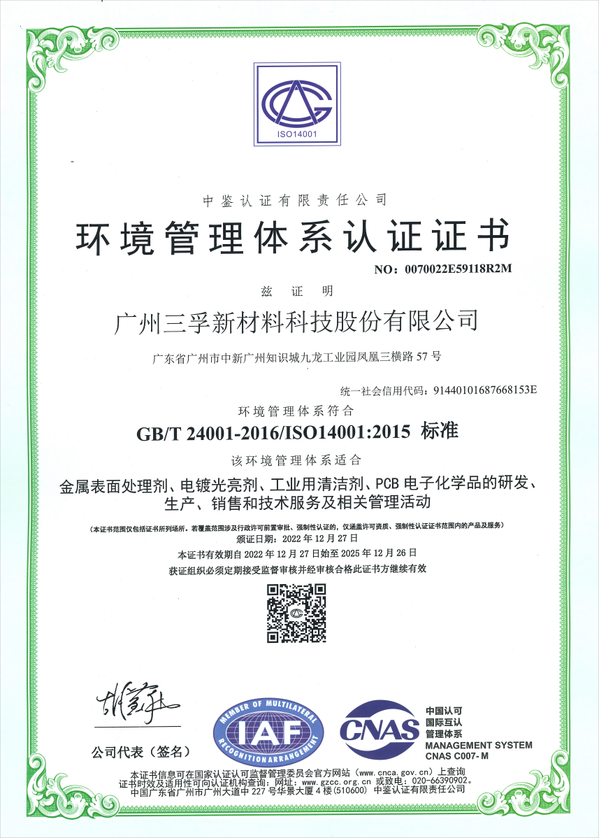 16 | 低泡型氯化钾镀锌添加剂获得2017年广东省高新技术产品认定 | 广东省高新技术企业协会 | 2017年12月 |