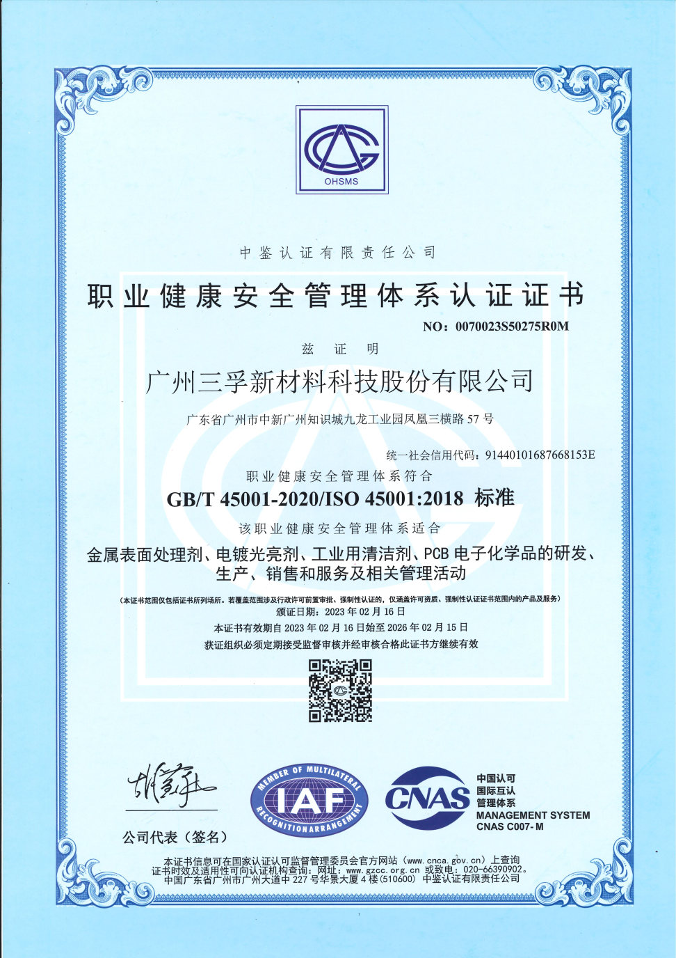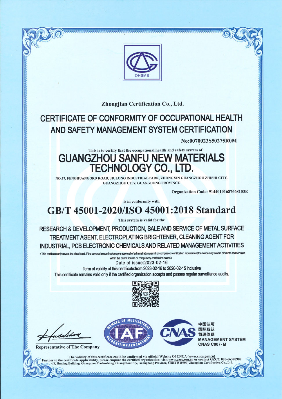 23 | SF-水溶性氯化钾镀锌添加剂获得2020年广东省高新技术产品认定 | 广东省高新技术企业协会 | 2021年4月 |