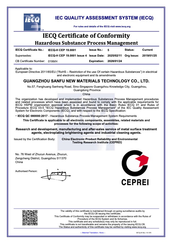 21 | SF-低氯化钾镀锌添加剂获得2019年广东省高新技术产品认定 | 广东省高新技术企业协会 | 2019年12月 |