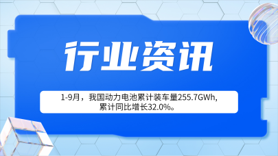 • 1-9月,我国动力电池累计装车量255.7GWh, 累计同比...